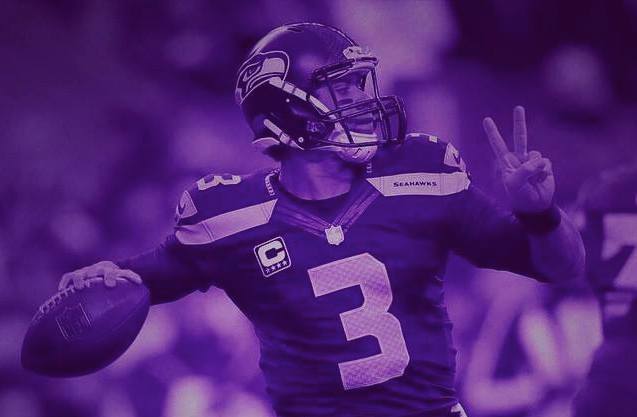 Seahawks quarterback Russell Wilson flashes a peace sign during a game. Wilson recently launched his "Pass the Peace" campaign to help end domestic violence. His efforts impressed guest blogger Emma Lytle. Image from <a href="https://www.facebook.com/DangerRussWilson" target="_blank">Russell Wilson's Facebook page</a>.